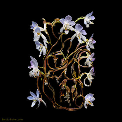 Trained on orchid imagery and anatomical data, the AI explores a latent space of possible forms, paralleling Charles Darwin's observations in ‘On the Various Contrivances by Which British and Foreign Orchids are Fertilised by Insects’ (1862). Darwin revealed orchids' intricate evolutionary adaptations for pollination, mapping a vast ‘design space’ of viable structures shaped by selection.