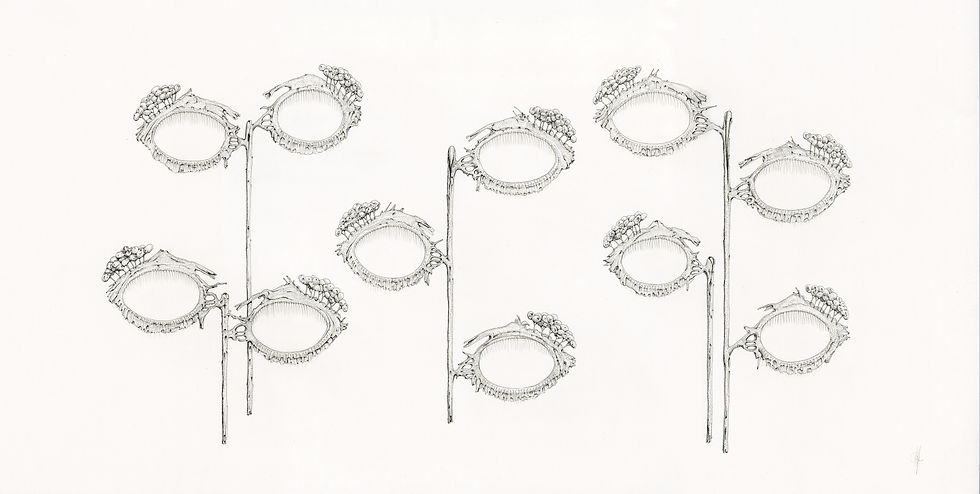 Figure 7: Tear glands, tear ducts, Michael Whittle, 2013, ink on paper, 45 x 84 cm.