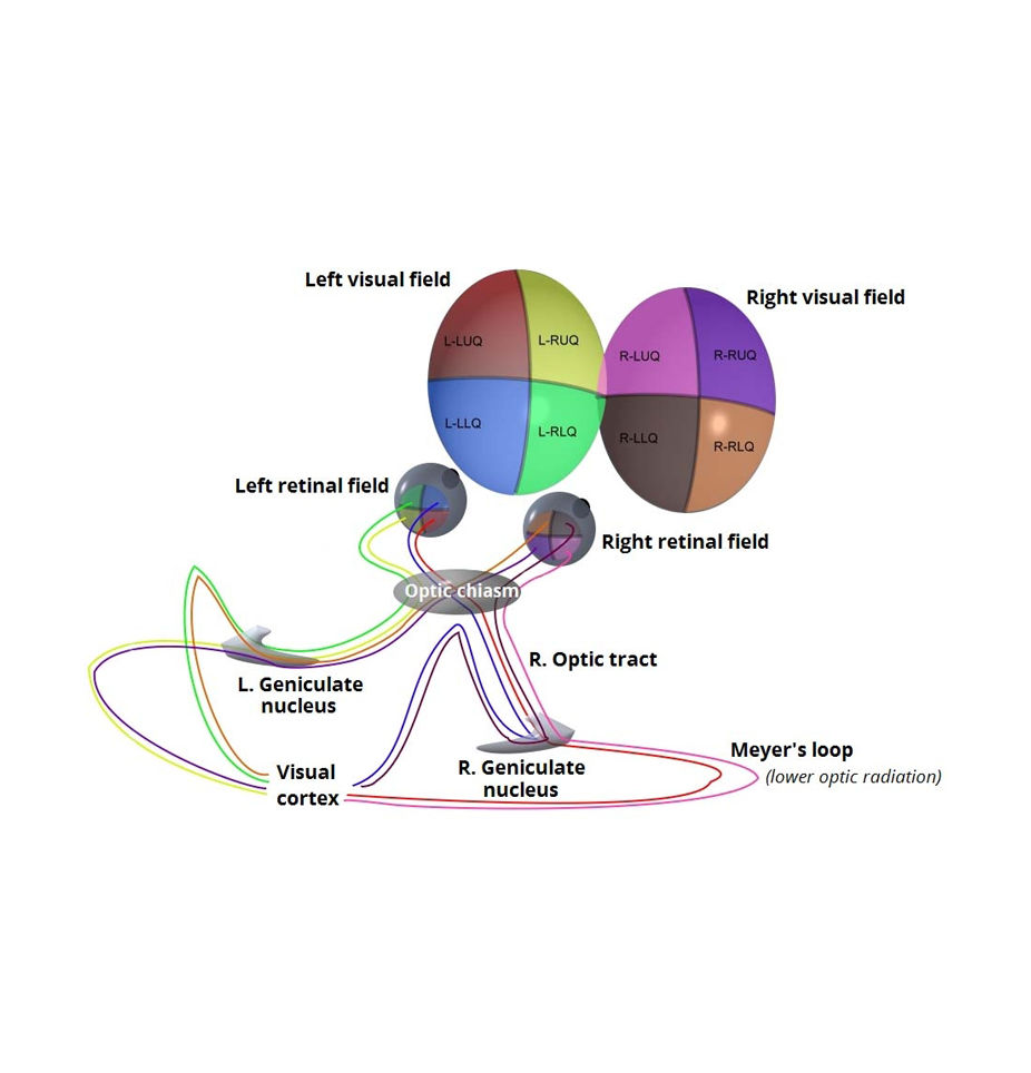 and how data from the various quadrants of the visual field gets divided up en route