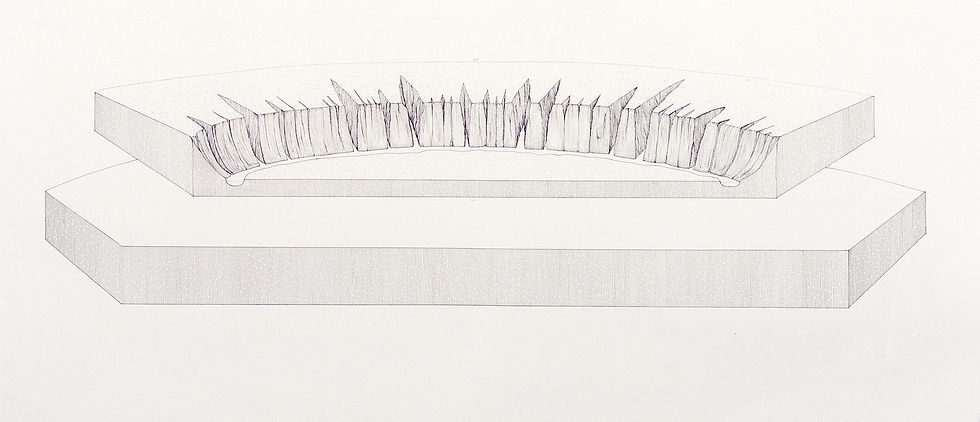 The drawing depicts a landscape stripped bare of its subjective qualities, a viewpoint resembling that of Caspar David Friedrich’s Romantic painting Wanderer above the sea of fog. Friedrich’s Romanticism was also objective in nature, “intensively contemplative, focused inwardly by melancholy, but created through a strict formalism”. By using a strict, formal, and objective language, the drawing invites the viewer into that "subjective void" of the haiku. It asks to be completed by their own sensations, aiming for what Francis Bacon described as the goal of all art: "...a thing to be as factual as possible and at the same time as deeply suggestive or deeply unlocking of areas of sensation..." .