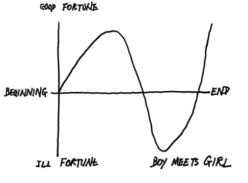 He showed how the story of Cinderella follows a clear archetypal shape: a protagonist starts with middling fortune, receives incremental gifts from a spirit or deity (the fairy godmother), suffers a dramatic fall from grace (midnight), and then rises to an "off the chart" level of bliss. In a brilliant stroke of analysis, Vonnegut recognized this same deep structural pattern in the New Testament. He identified other common patterns as well, such as "Man in a Hole" (a simple fall then rise) and "Boy Meets Girl" (fall-rise-fall).