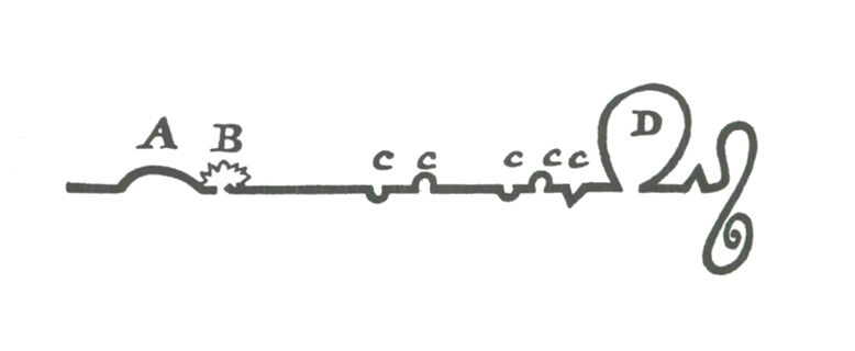 To make this chaotic structure a visible, undeniable part of the book, Sterne famously included a series of diagrams in Volume VI that map the novel's narrative progress. He presents the reader with several charts. One shows a simple straight line, which he ironically offers as the ideal path a story should take. He then contrasts this with the actual paths of his own volumes: a chaotic scribble of loops, knots, and wild deviations that perfectly visualizes the reader's journey through his digressive text.
