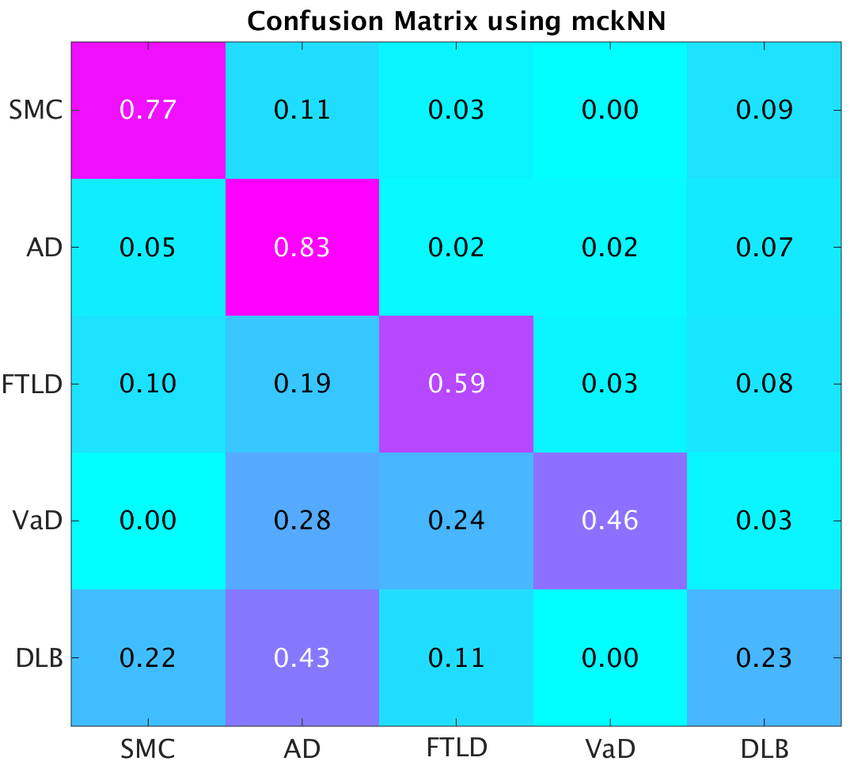 7) Tong T, Ledig C, Guerrero R, Schuh A, Koikkalainen J, Tolonen A, Rhodius H, Barkhof F, Tijms B, Lemstra AW, Soininen H, Remes AM, Waldemar G, Hasselbalch S, Mecocci P, Baroni M, Lötjönen J, Flier WV, Rueckert D. Five-class differential diagnostics of neurodegenerative diseases using random undersampling boosting. Neuroimage Clin. 2017 Jun 12;15:613-624. doi: 10.1016/j.nicl.2017.06.012. PMID: 28664032; PMCID: PMC5479966.
