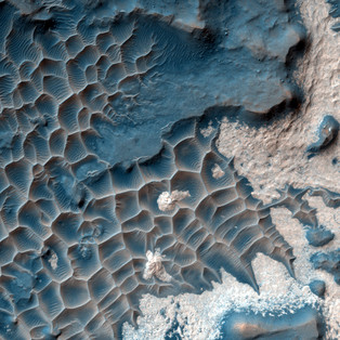 However I finally chose Noctis Labyrinthus, a region often poetically referred to as the 'Labyrinth of the Night'. This dense network of intersecting valleys and canyons forms a geological maze carved into the Martian crust at the western end of Valles Marineris, the largest canyon in our solar system. In the mornings its shadowy recesses are deep and cold enough to briefly fill with mist at sun rise, adding its mysterious allure.